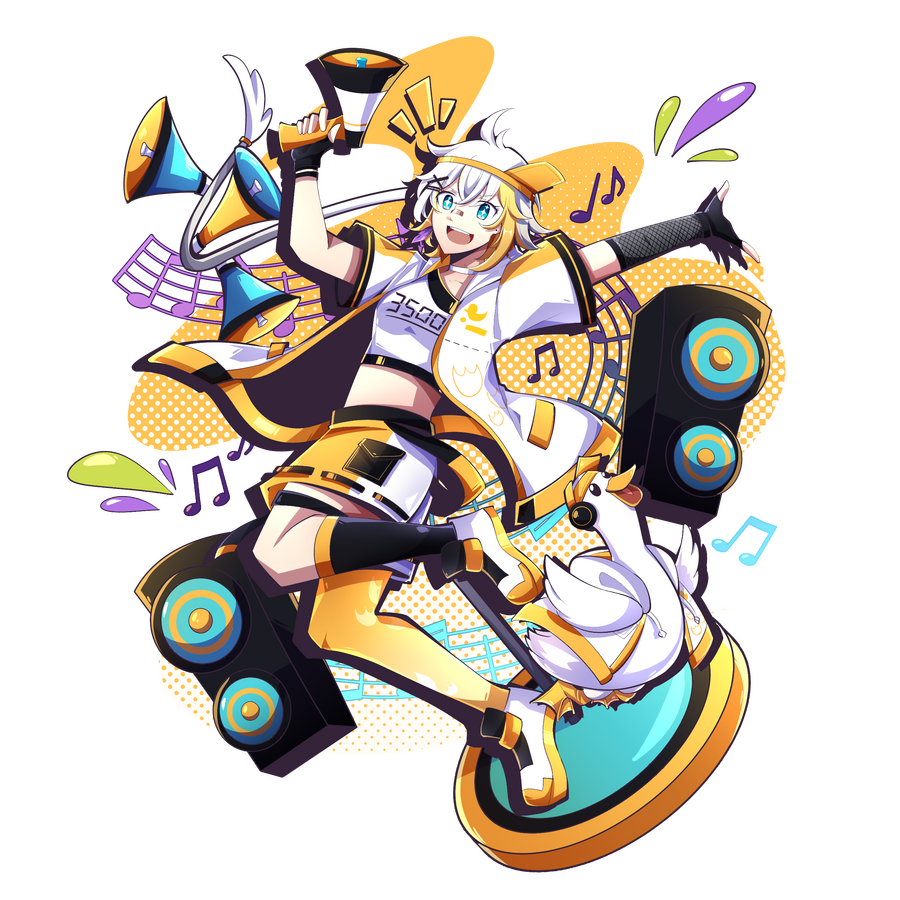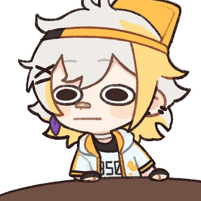 • Key Items: Purple Feather Earring (right ear), Visor (upside-down), Game card holder (on right breast pocket) Star eyes. Bandage across nose